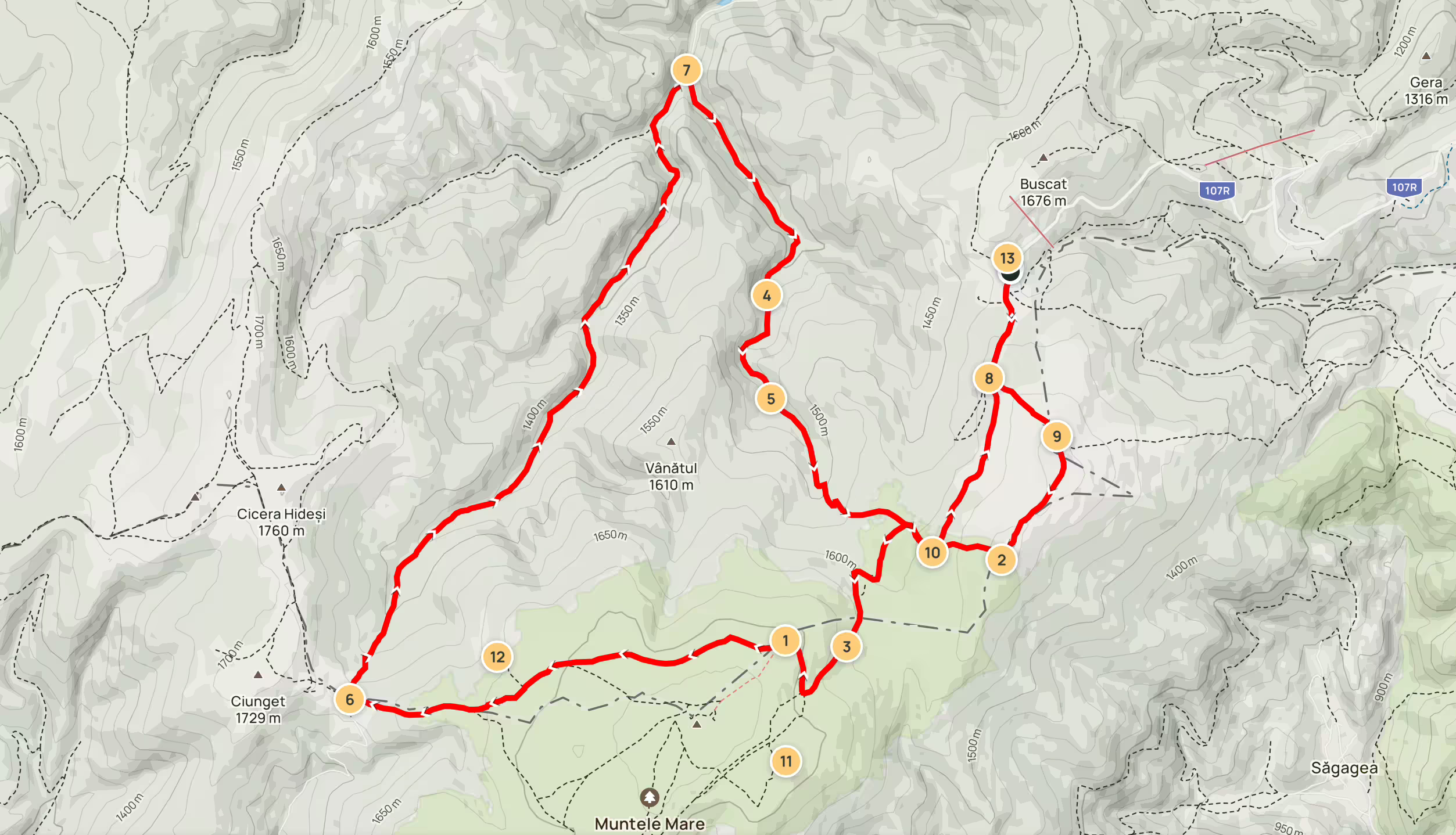 | Circuitul: | Buscat – Muntele Mare – saua Prislop – Valea Iara – Valea Podurilor – direct finish pe forestier |